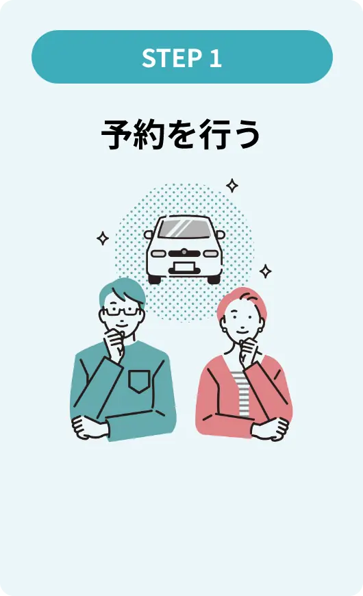 エリア・車種・日時・店舗を選んで予約。内容は確認メールでチェックできます。